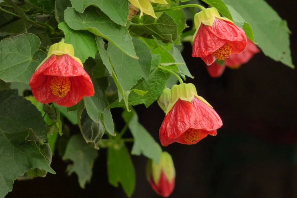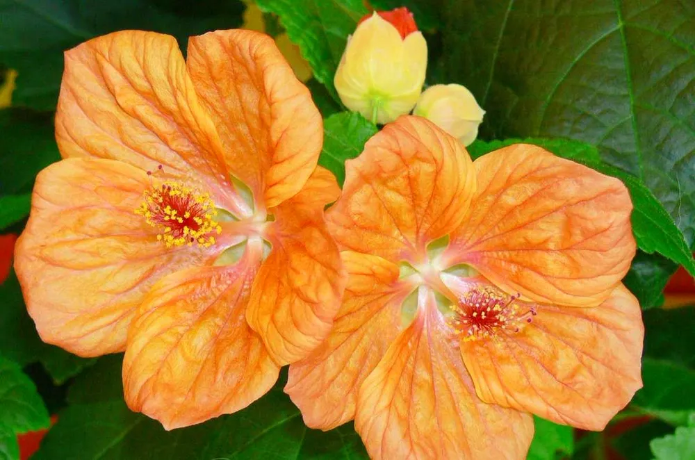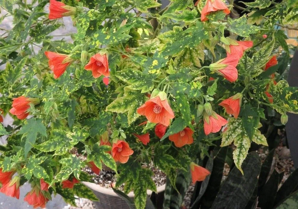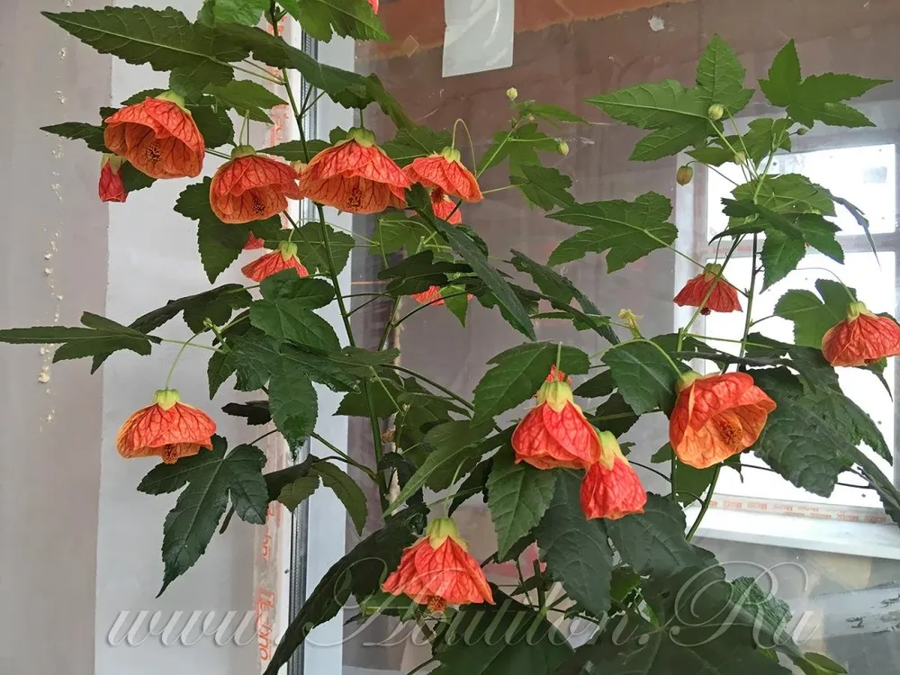 Это наиболее распространенный вид абутилона, с большими сердцевидными листьями и ярко-красными цветками.