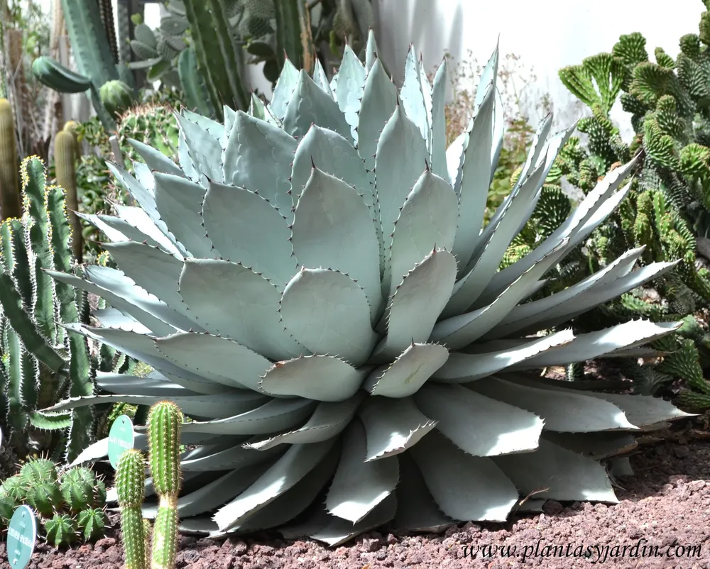 Агава – род суккулентных растений семейства спаржевых, распространенных в жарких регионах Америки. Название рода происходит от ацтекского слова agave, что переводится как сладкий. Агавы привлекают внимание своей сочной листвой, собранной в розетку, и эффектной цветоносной стрелой с колокольчатыми цветами. Агава – растение с богатой историей, которое было культивировано еще древними цивилизациями Мезоамерики. Из сердцевины агавы получали нектар, из листьев ткали веревки и шили одежду, а сок применяли для лечения различных заболеваний. В современном мире агава ценится как декоративное растение, которое легко выращивать в домашних условиях.