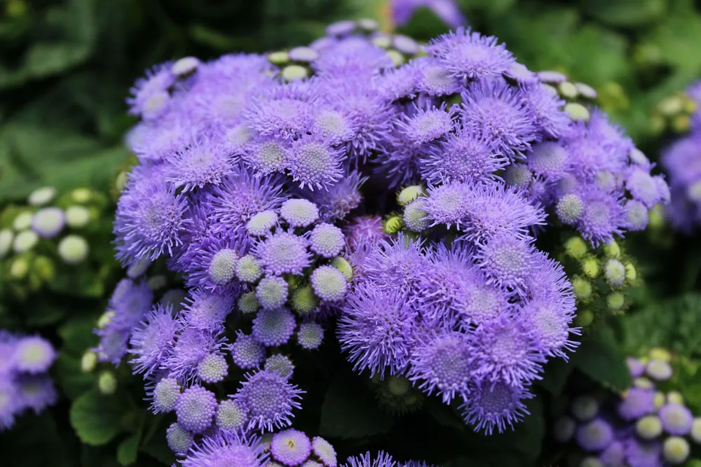 Агератум Бонжур отличается от других сортов своей компактностью и обильным цветением. По сравнению с некоторыми видами агератумов, он более устойчив к болезням и вредителям. **Интересный факт:** В некоторых культурах Агератум считается символом радости и оптимизма.