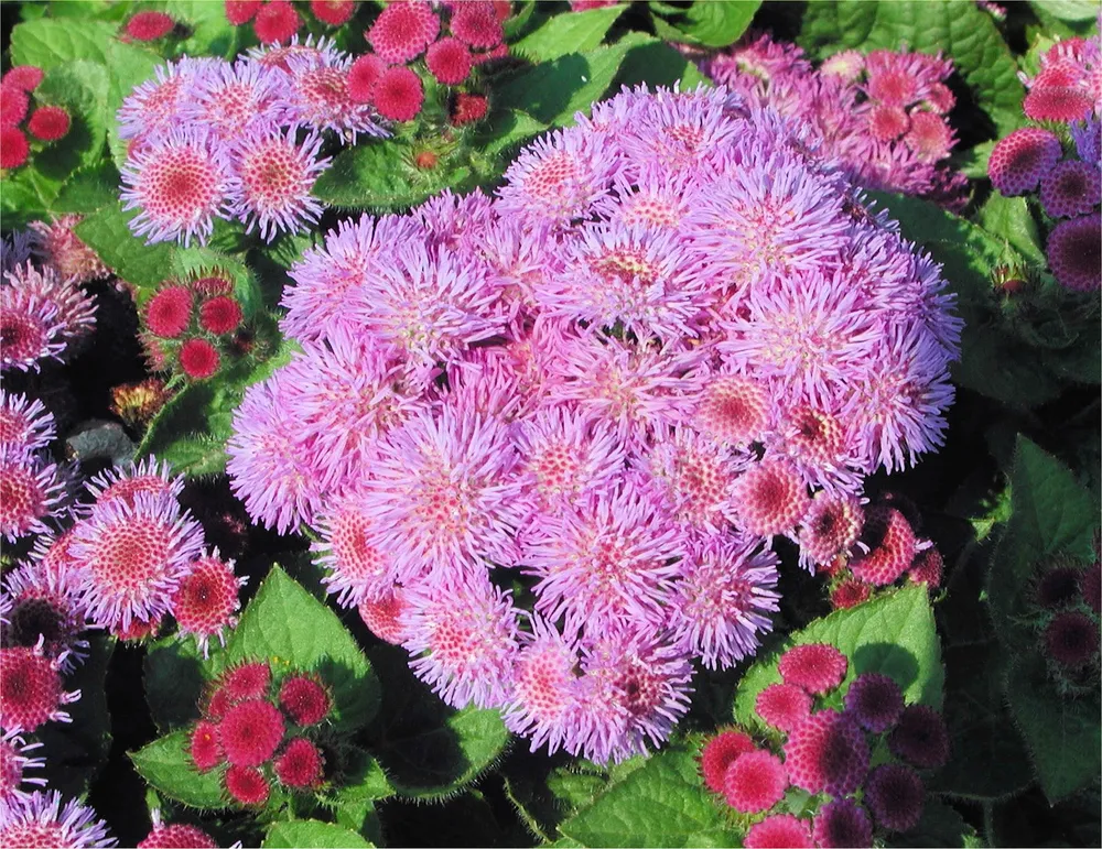Агератум Кардинал Бордо – это удивительное растение, которое покоряет своим ярким цветом и декоративностью. Его густые соцветия насыщенного бордового оттенка создают невероятное зрелище в любом саду или на балконе. Благодаря своей неприхотливости в уходе агератум Кардинал Бордо стал одним из самых популярных сортов среди садоводов-любителей. Этот сорт был выведен селекционерами относительно недавно, однако уже успел завоевать сердца многих цветоводов благодаря своим выдающимся характеристикам. Агератум Кардинал Бордо отличается обильным цветением, которое продолжается с весны до первых заморозков. Цветки растения плотные, шаровидные, а их окраска варьируется от глубокого бордового до вишневого цвета. Растение среднерослое, высотой около 25-30 см. #Освещение Для полноценного развития и пышного цветения агератуму Кардинал Бордо необходимо достаточное количество света. Лучшим вариантом является размещение растения на солнечном месте, где оно будет получать не менее 6 часов прямых солнечных лучей в день. При недостатке освещения цветки могут стать бледными и мелкими, а само растение вытянется и потеряет декоративность. В жару следует избегать палящего солнца в полуденные часы. #Почва Агератум Кардинал Бордо предпочитает плодородные, хорошо дренированные почвы с нейтральным или слабокислой реакцией (pH 6.0-7.0). В качестве грунта можно использовать смесь дерновой земли, торфа и песка в соотношении 2:1:1. Важно обеспечить хороший дренаж, чтобы корневая система не загнивала от избытка влаги. #Полив Агератум Кардинал Бордо нуждается в регулярных поливах, однако важно избегать переувлажнения почвы. Оптимальным режимом является полив по мере подсыхания верхнего слоя грунта на глубину 2-3 см. В жаркую погоду полив следует проводить чаще – 1-2 раза в день, а зимой достаточно поливать раз в неделю. При переливе воды корни растения начнут загнивать, что приведет к пожелтению листьев и остановке роста. В случае недостатка влаги листья могут начать увядать. Определить необходимость полива можно визуально – если лепестки цветков становятся вялыми или листья теряют тургор. #Подкормка Для обильного цветения агератуму Кардинал Бордо требуется подкормка. В период активного роста и цветения (с весны до осени) рекомендуется подкармливать растение каждые две недели комплексными удобрениями для цветущих растений. Подкормку лучше проводить после полива, когда почва будет влажной. #Формирование Формирование агератума Кардинал Бордо не является обязательным мероприятием, но может быть выполнено для поддержания его компактной формы и увеличения декоративности. Для этого следует регулярно удалять отцветшие цветочные стрелки и прищипывать верхушки побегов, чтобы стимулировать образование боковых ветвей. #Сравнение с другими сортами Агератум Кардинал Бордо отличается от других сортов своими насыщенно-бордовыми цветками, которые выделяются на фоне зеленого сада или балкона. В отличие от многих других сортов, агератум Кардинал Бордо обладает высокой зимостойкостью и может успешно перезимовать в условиях средней полосы без дополнительного укрытия. #Тонкости выращивания • Для профилактики заболеваний рекомендуется регулярно опрыскивать листья агератума Кардинал Бордо раствором бордоской жидкости или фунгцида. • При посадке рассад