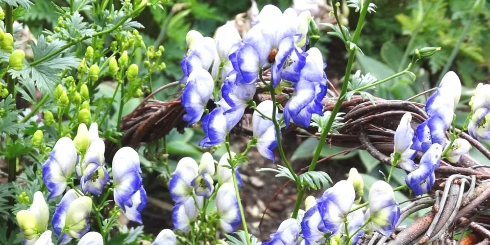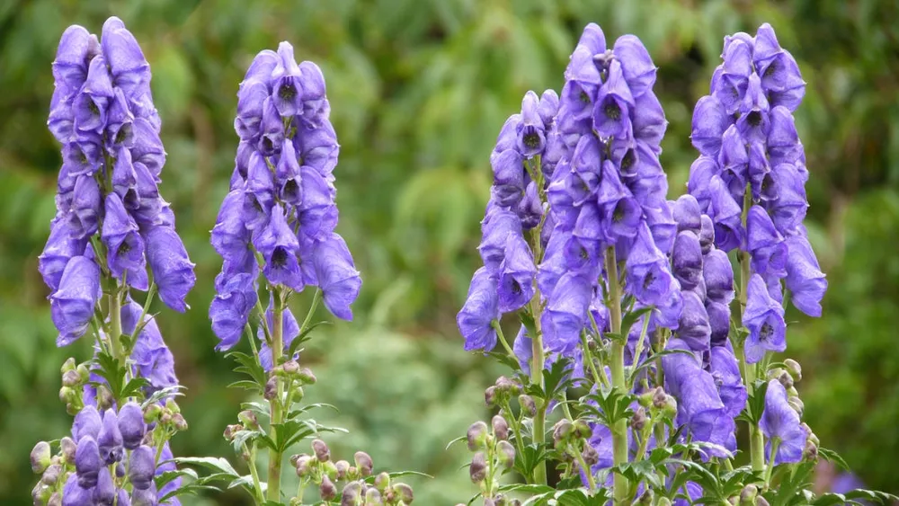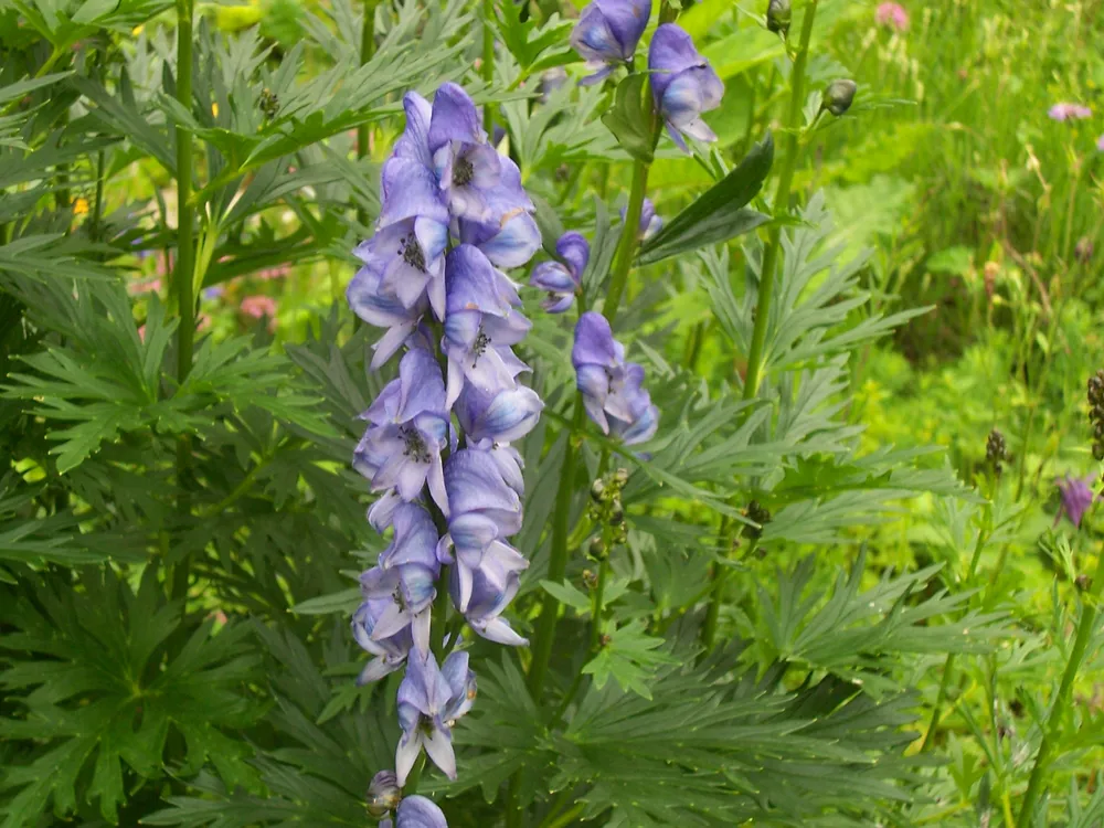 Akoнит, борец, прострел-трава (Aconitum) – многолетнее растение семейства лютиковые, известное своей красотой и, к сожалению, высокой токсичностью. Это красивое растение, родом из горных регионов Евразии, известно своим декоративным значением благодаря ярким цветкам в форме колокольчиков, собранным в густые кисти. В дикой природе акононит встречается в разных видах, от низкорослых до высоких, достигающих двух метров. Цветки могут быть синими, голубыми, фиолетовыми, белыми или даже розовыми.