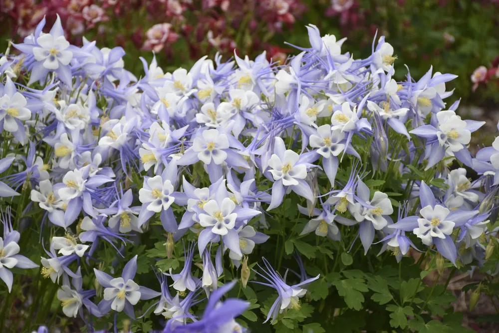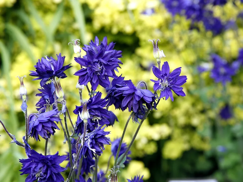 Аквилегия Блю выделяется среди других сортов аквилегии своим насыщенным цветом соцветий. Например, сорт ‘Apollo’ отличается белыми цветами, а ‘Crimson Star’ — ярко-красными.