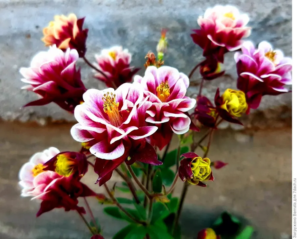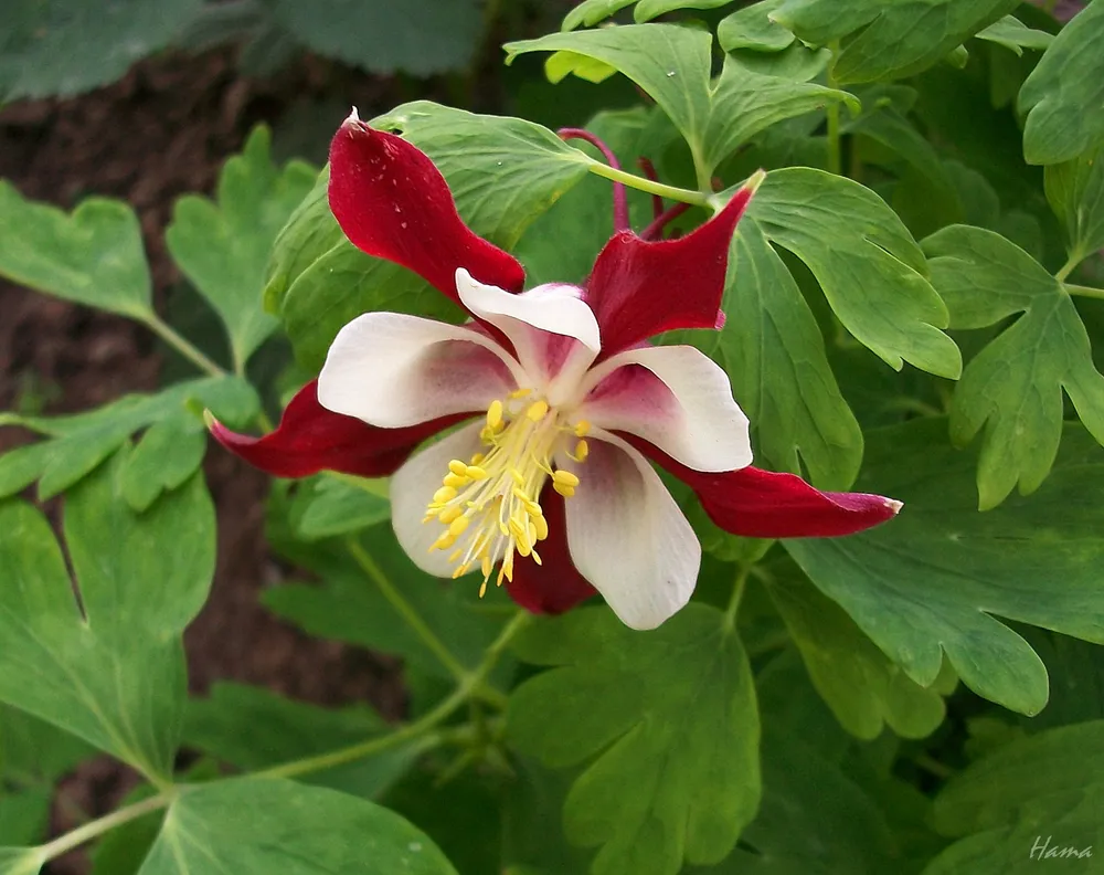 Винки красная с белым отличается от других сортов аквилегии своей яркой и необычной окраской цветков.