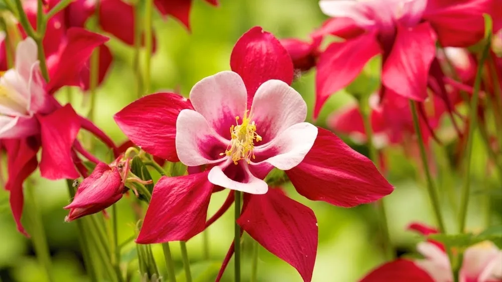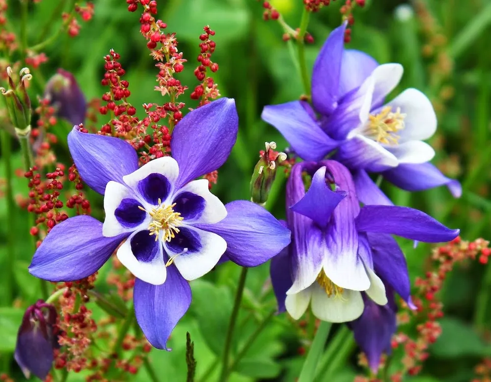 Аквилегии представлены большим разнообразием сортов, каждый из которых обладает своими уникальными характеристиками. Например, сорт ‘Nora Barlow’ отличается яркими красными цветками, а ‘Blue Bird’ — небесно-голубыми. Сорт ‘Crimson Star’ имеет необычно темные и насыщенные красные цветки.