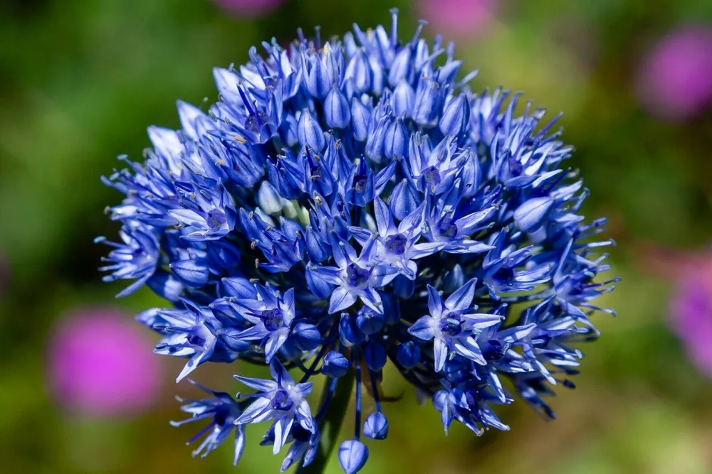Аллиум азуреум, или луковый гигант, — это удивительное растение, которое заслуживает внимания любого цветовода. Его латинское название подчеркивает яркую особенность этого сорта: глубокий синий цвет шарообразных соцветий, напоминающих небесные купола. Аллиум азуреум принадлежит к семейству луковых и представляет собой многолетнее травянистое растение высотой до 60-100 сантиметров.