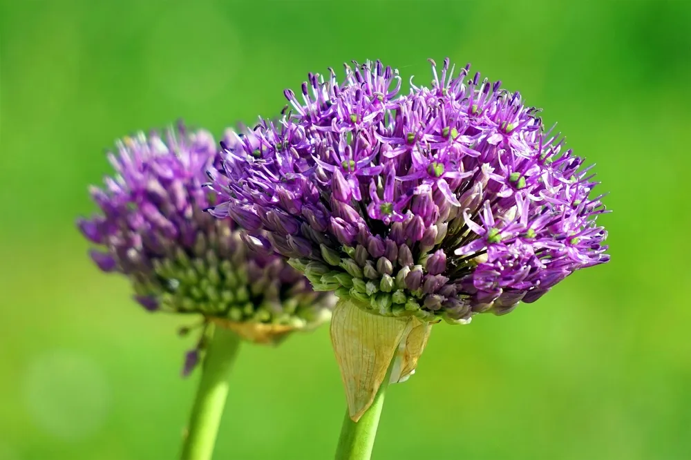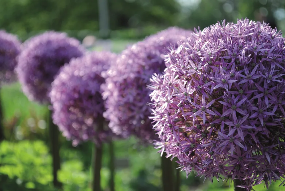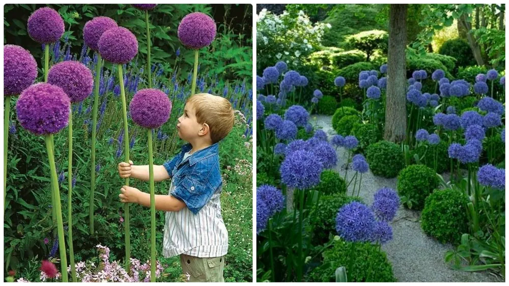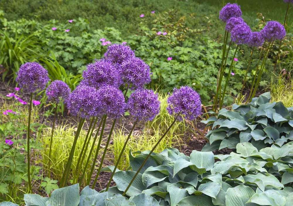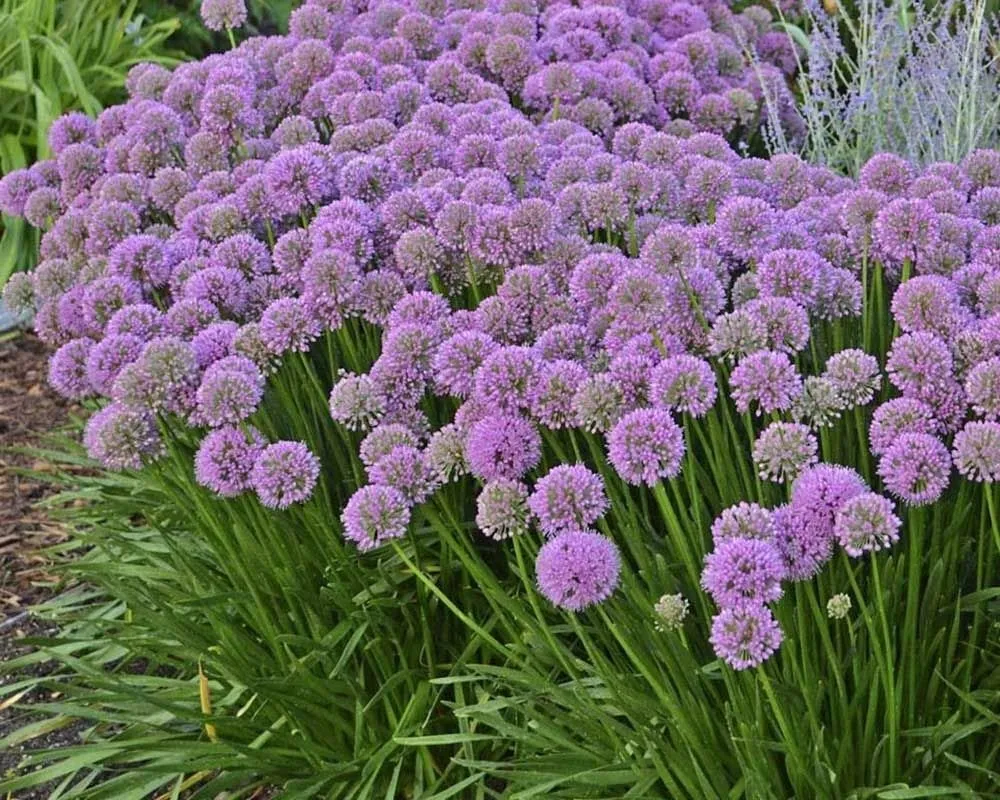 Аллиум Миллениум выделяется среди других сортов лука своими крупными, шаровидными зонтиками-цветками пурпурного цвета. Он более компактен, чем некоторые другие виды аллиума, что делает его идеальным для посадки в небольших садах и контейнерах.