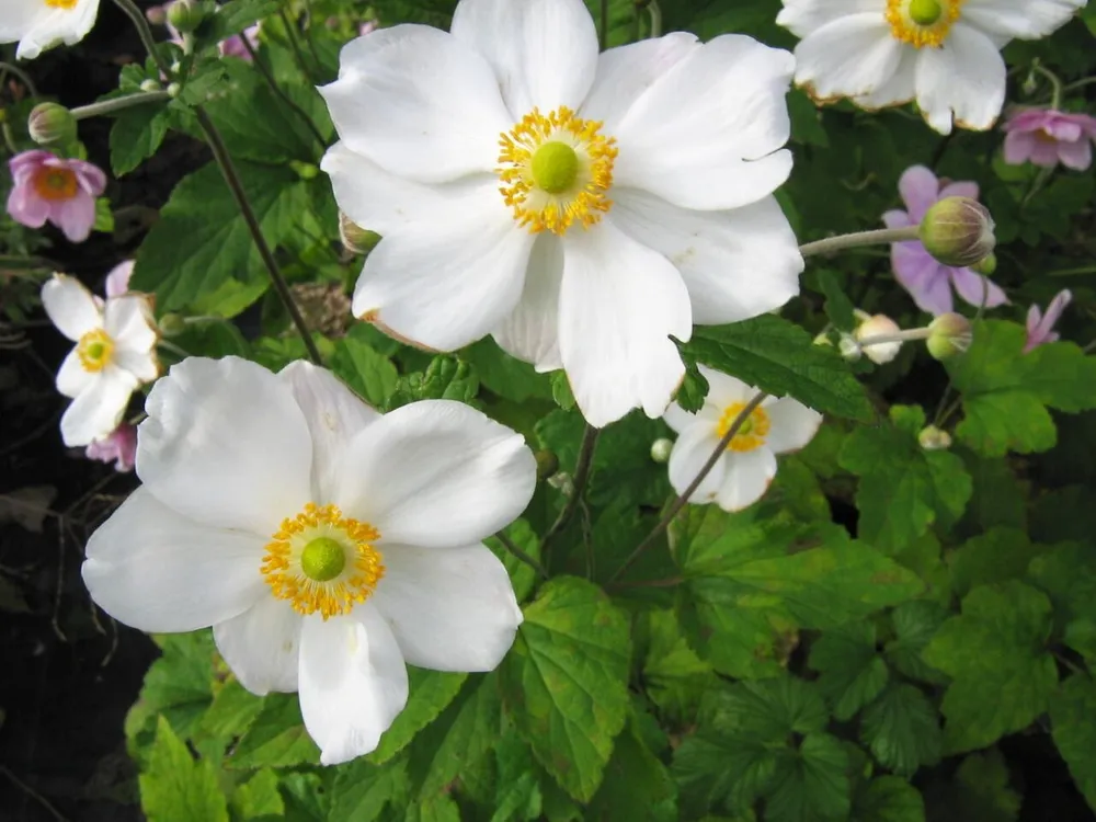 Андреа Аткинсон отличается от других сортов анемонов своими крупными махровыми цветами и продолжительным цветением. По сравнению с ранними сортами, которые цветут в мае-июне, Андреа Аткинсон цветет с мая по октябрь, что значительно продлевает сезон декоративности.