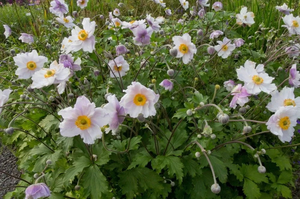 - Анемона японская: отличается крупными цветами и длинными цветоносами.