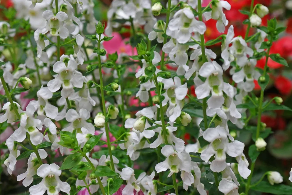 Ангелония (Angelonia) – это декоративное растение семейства яснотковые, которое привлекает внимание своими яркими цветами, напоминающими колокольчики, и густой листвой. Родиной ангелонии являются тропические регионы Южной Америки, а в настоящее время она культивируется во многих странах мира благодаря неприхотливости и долгому периоду цветения. Ангелония – это многолетнее растение, но в большинстве случаев выращивается как однолетнее в средней полосе России. Благодаря своей компактной форме (в высоту достигает всего от 20 до 60 см) и густой кроне из мелких продолговатых листьев, она идеально подходит для создания ярких цветников и бордюров. Цветовая гамма ангелонии весьма разнообразна: от нежных пастельных тонов до насыщенных красных, розовых и синих оттенков.