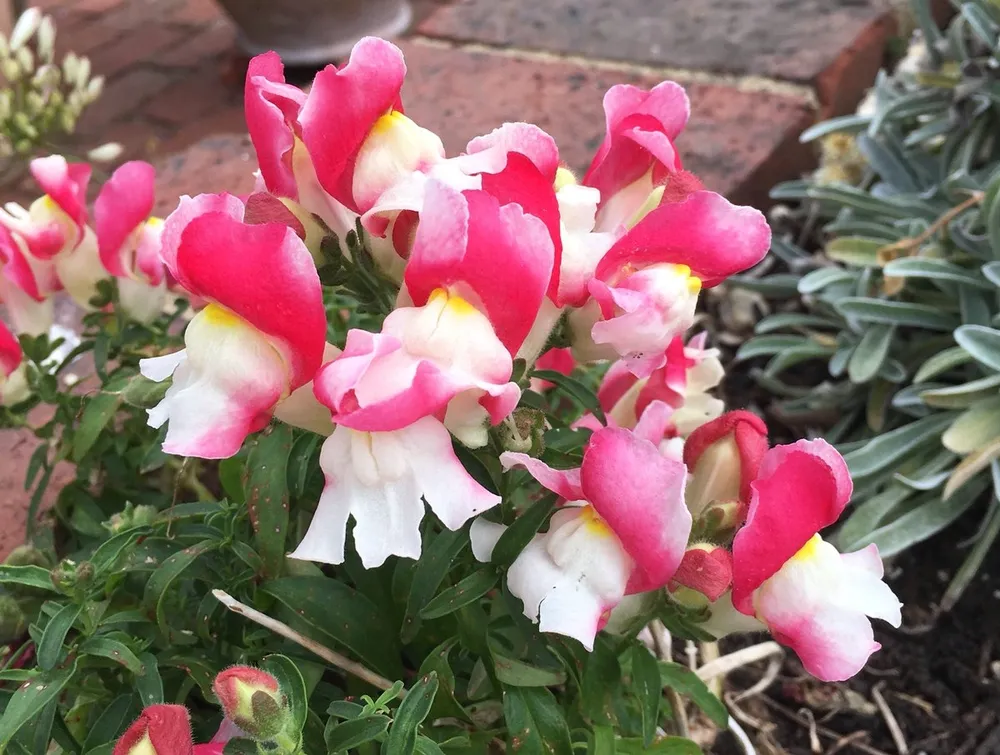 Антирринум Флорал Шауэрс Биколор вишневый может быть сформирован в виде куста или выращиваться как ампельное растение.