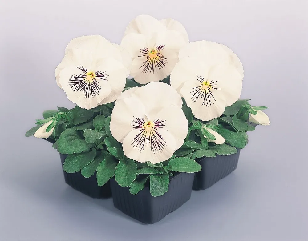 Анютины глазки белые, более известные как швейцарские гиганты, представляют собой сорт однолетней цветочной культуры из семейства лютиковых. Они завоевали популярность благодаря своим крупным, белым цветкам, напоминающим глазки анютины, и неприхотливому характеру.