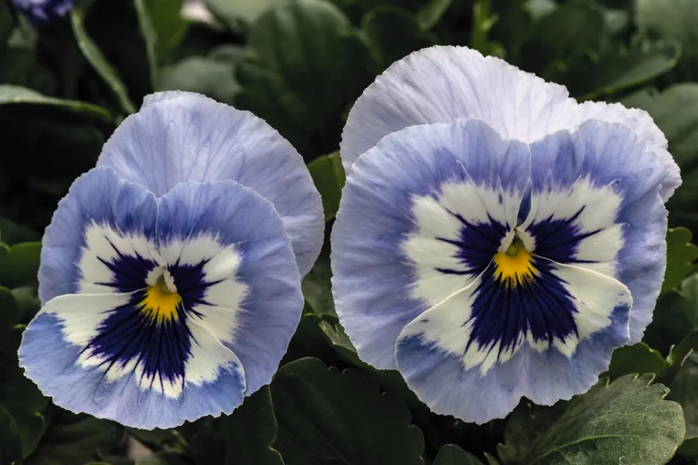 Анютины глазки Лаура выделяется своей яркой двухцветной окраской лепестков. В отличие от многих других сортов, где цветки преимущественно однотонные, эта разновидность поражает своим необычным сочетанием фиолетового и белого цветов.