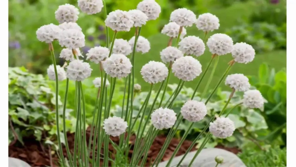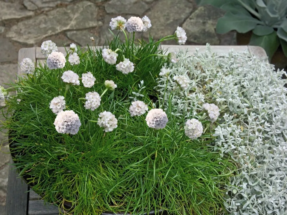 Армерия приморская «Армада Уайт» отличается от других сортов своим нежным белым цветом. Многие сорта армерии имеют розовый или красный цвет соцветий.