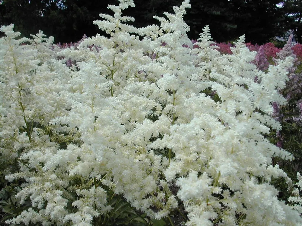 Появившаяся в результате селекции, астильба Белая выводит на новый уровень традиционные характеристики этого вида. Её белые цветы, собранные в густые метелки высотой до 40-50 см, создают эффект облачности и наполняют сад воздушностью. Листья растения темно-зеленые, очередно расположенные, придают ему изящный внешний вид.