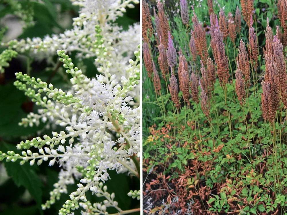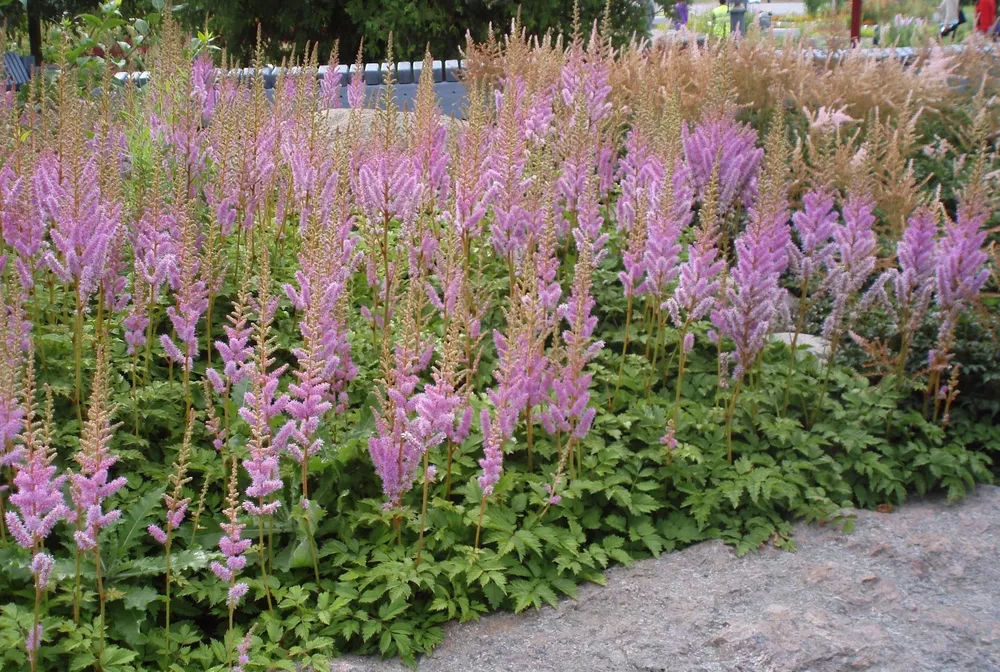 Астильба китайская Даурия выделяется среди других сортов своей высокой морозостойкостью и неприхотливостью. Она хорошо переносит даже сильные заморозки до -30°C. По сравнению с астильбой японской, у которой более изящные и мелкие цветки, Даурия обладает более крупными, густыми соцветиями, что делает ее особенно привлекательной для создания ярких цветовых акцентов в саду.