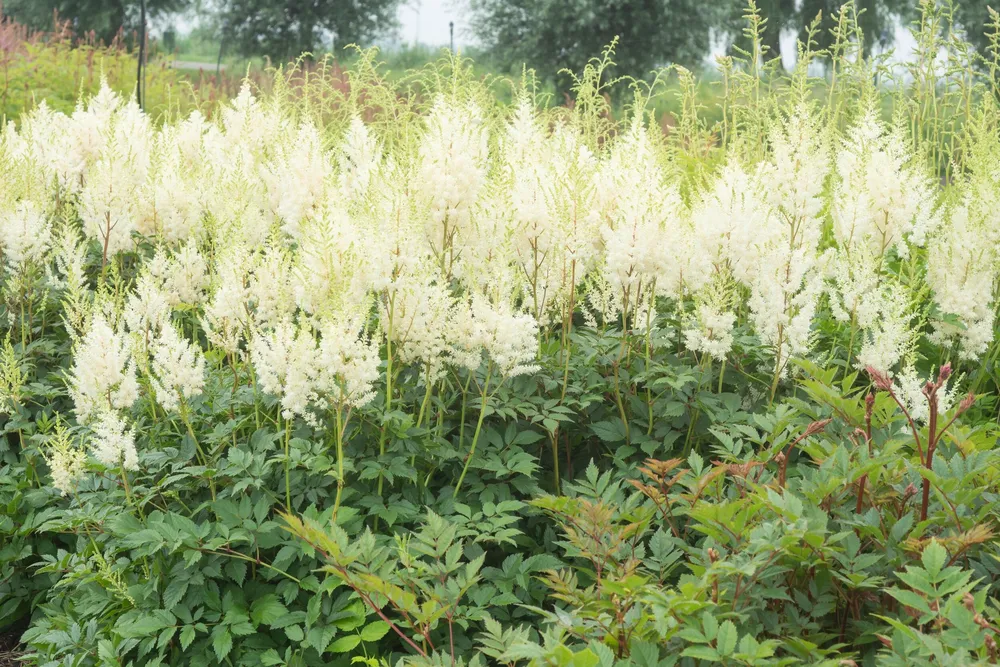 Например, сорт Астильба ‘Вайнред’ имеет более светлые листья и розовые цветки, а Астильба ‘Блю Рифт’ отличается голубыми оттенками в цветении.