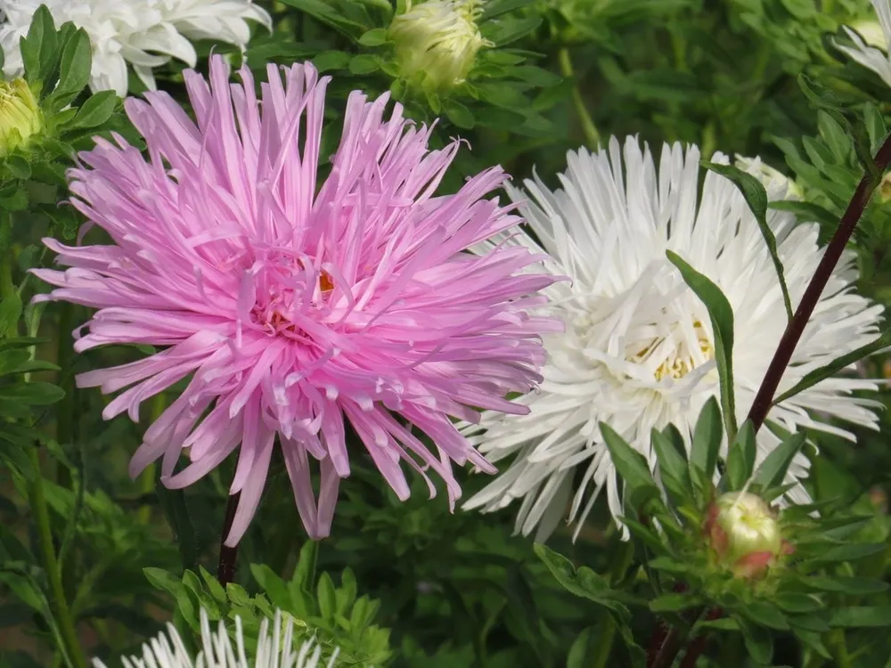 В сравнении с высокорослыми сортами астр, например, «Великан», Эрфуртский карлик более подходит для выращивания в контейнерах или для оформления небольших участков. Кроме того, его компактные размеры позволяют создавать многочисленные композиции на клумбах.