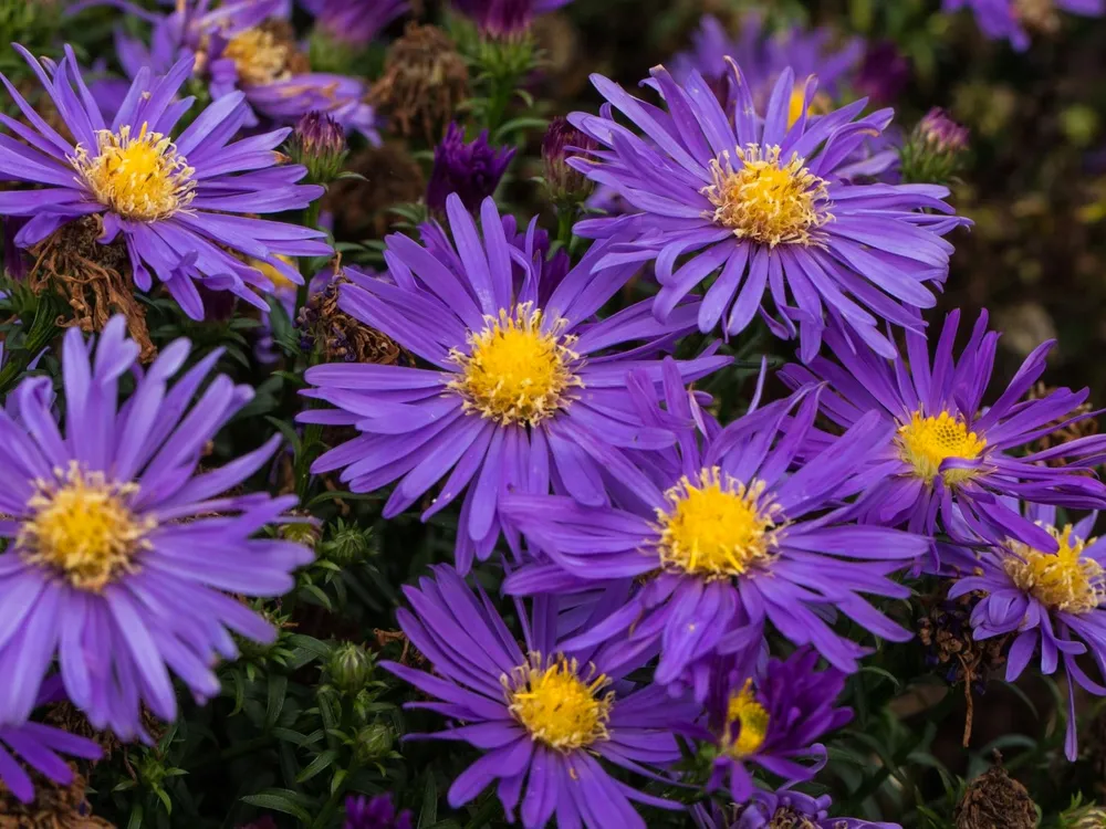 Астра ‘Миднайт Скай’ отличается от других сортов своей темно-синей окраской цветков.