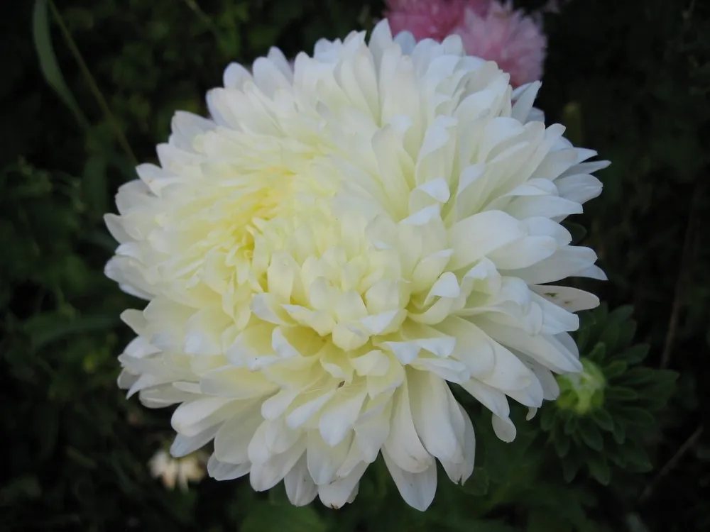 Астра Леди Корал белая, розовидная – это удивительное растение, которое украсит ваш сад изысканным цветением с конца лета до первых заморозков. Ее чашелистики окрашены в нежно-розовый цвет с белым центром, создавая поистине волшебный вид.
