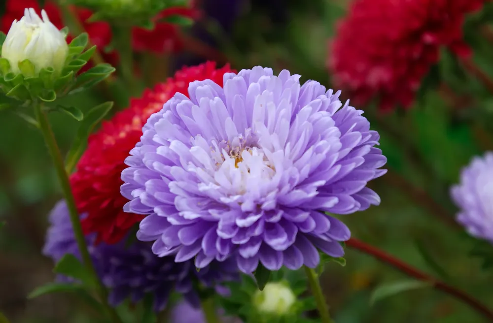 В сравнении с другими сортами астр пионовидной формы, Вайолеттер выделяется своей насыщенной сиреневой окраской и более крупными цветами.
