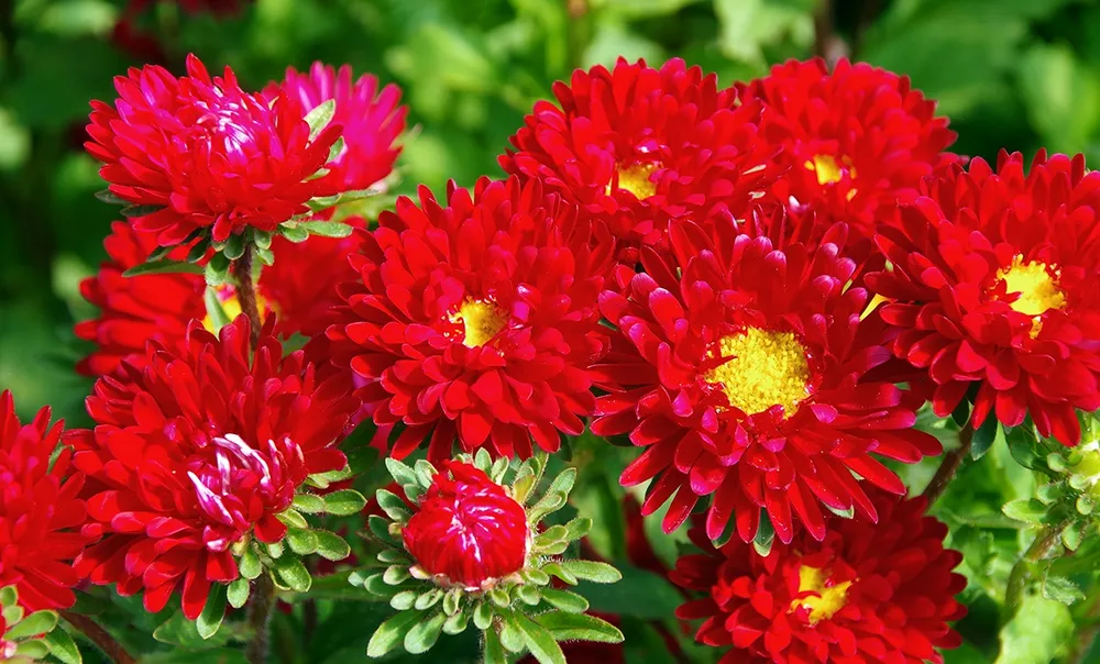 Астра Зарево выделяется среди других сортов своим компактным размером и ярким красным цветом. Например, астра «Гранд» – это крупноцветковый сорт с более плавными формами цветов, в то время как Астра Зарево обладает более строгой геометрией цветка.