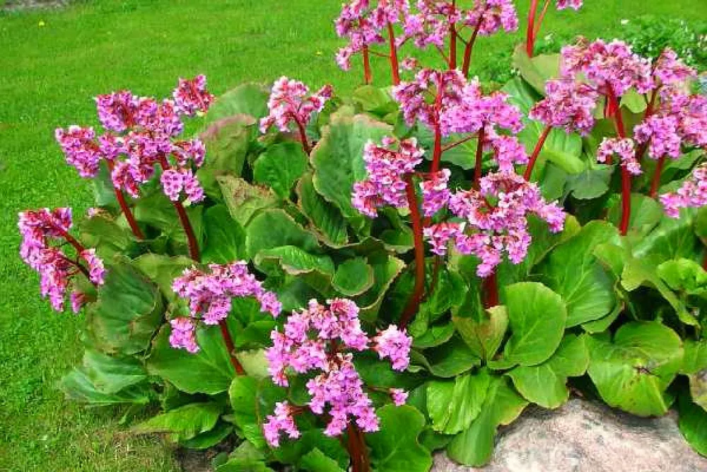 Бадан, более известный как бергения, — это красивый многолетник с кожистыми листьями, который украсит ваш сад своей стойкостью и декоративностью. Родиной бергений являются горные районы Центральной Азии, где они произрастают в тенистых местах на влажной почве. Благодаря своему неприхотливому характеру и способности выдерживать морозы до -35°C, бадан широко используется в ландшафтном дизайне как для создания миксбордеров, так и для оформления альпинариев. Бергения представляет собой компактное растение с высотой 20-40 см и шириной около 40-60 см. Листья у растения крупные, плотные, глянцевые, по форме напоминающие сердечко. Цвет листьев может варьироваться от ярко-зеленого до бронзово-красного в зависимости от сорта. Летом бадан покрывается зонтиками из маленьких цветков розового, белого или пурпурного цвета, которые привлекают пчел и других полезных насекомых.
