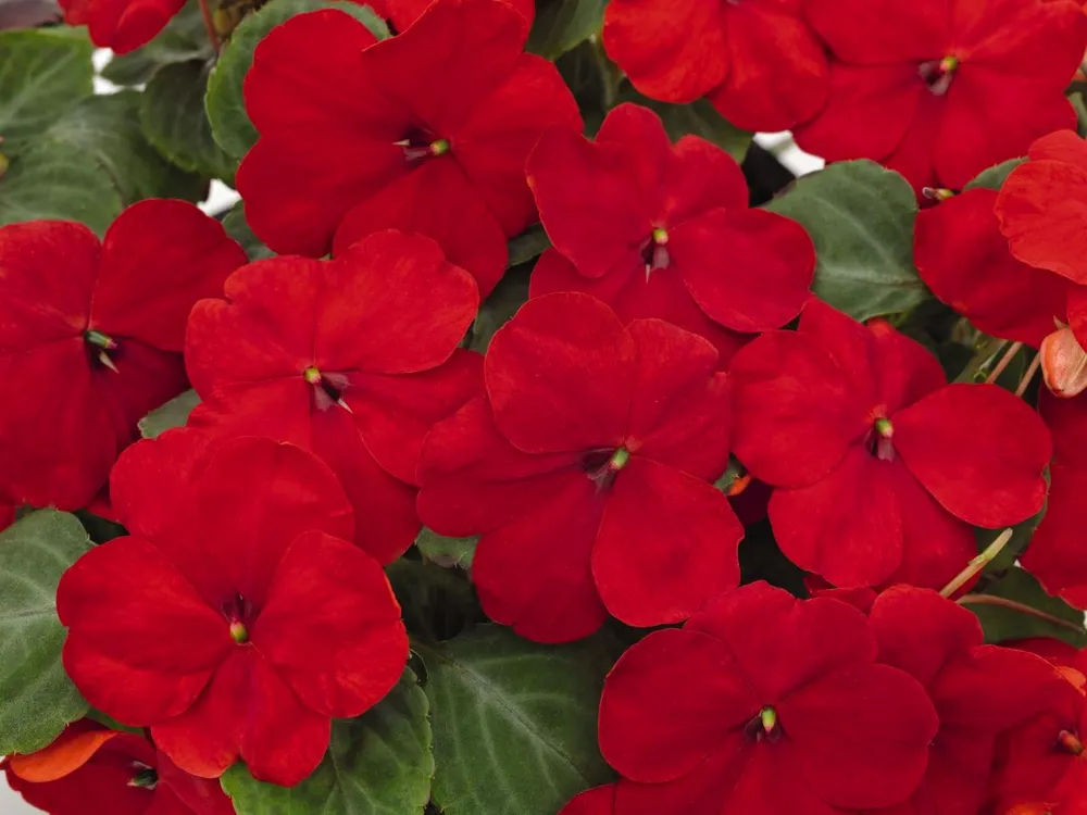 Бальзамин Карнавал Черри Липс отличается от других сортов яркой окраской своих цветков.
