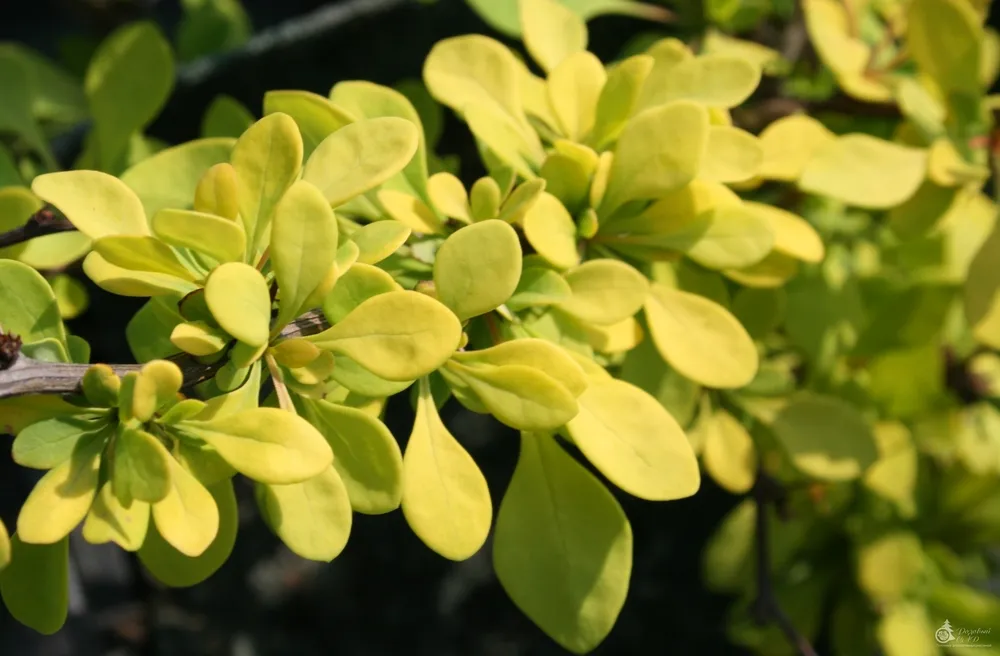 Голден Хоризон отличается от других сортов барбариса Тунберга более ярким золотистым окрасом листьев.