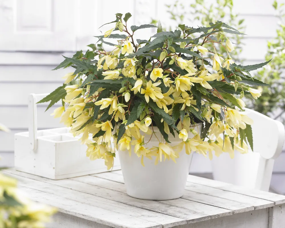 Оранжево-желтые оттенки цветков создают ощущение тепла и солнечности, а их форма напоминает маленькие колокольчики. Бегония ампельная прекрасно подходит для подвесных кашпо, балконных ящиков и вертикального озеленения. Ее можно использовать в оформлении интерьеров, привнося в них яркую и свежую ноту.