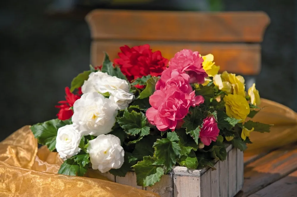 Бегония Попурри отличается от других сортов крупными цветками, разнообразной палитрой расцветок и более выносливым характером.