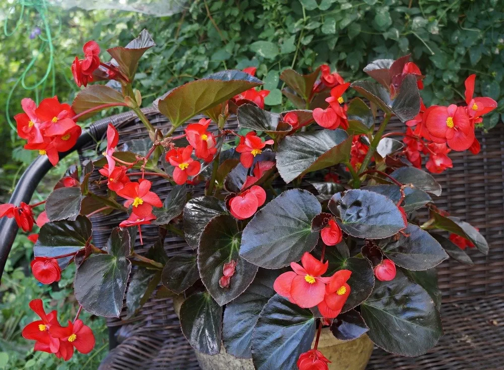 Бегония Викинг красная на бронзовом – это декоративное растение, покорившее сердца цветоводов своей яркой окраской и компактностью.