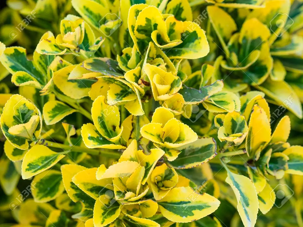 Бересклет Форчуна Санспот (Euonymus fortunei ‘Sunspot’) – это замечательный декоративный кустарник, который покоряет сердца садоводов своим ярким внешним видом. Он относится к семейству миртовые и является одним из самых популярных сортов бересклета фортуны. Этот сорт ценится за свою компактную форму, густую листву с необычными пятнами желтого цвета, а также за неприхотливость в уходе. Бересклет Форчуна Санспот – это вечнозеленый кустарник, который может достигать высоты до 1 метра и ширины около 0,8 метра. Его глянцевые листья имеют насыщенно-зеленую окраску с яркими желтыми пятнами, которые создают контрастный и привлекательный рисунок на поверхности растения. Цветы Форчуна Санспот невзрачные кремового цвета, но их декоративная ценность заключается в их обильном цветении весной.