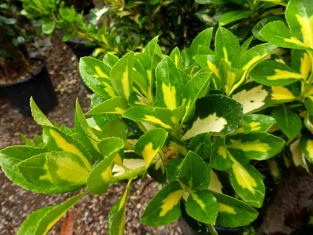 Бересклет японский ‘Ауреомаргината’ отличается от других сортов бересклетов своей ярко выраженной золотистой каймой на листьях. Сорт ‘Dart’s Gold’, например, имеет более желтые листья без такой четкой каймы, а сорт ‘Bagatelle’ характеризуется яркой листвой красного цвета.