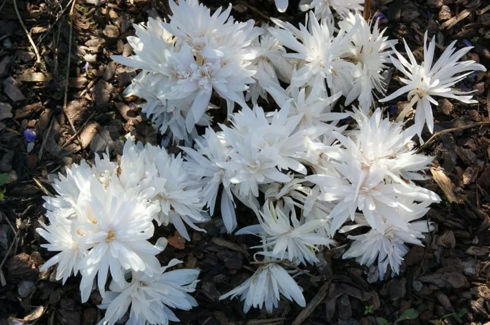 * Безвременник Альбум хорошо переносит зиму под снеговым покровом, но в холодных регионах его можно укрыть лапником для большей защиты от морозов. * Для сохранения декоративности куста осенью после цветения необходимо срезать отцветшие цветоносы и удалить слабые стебли.