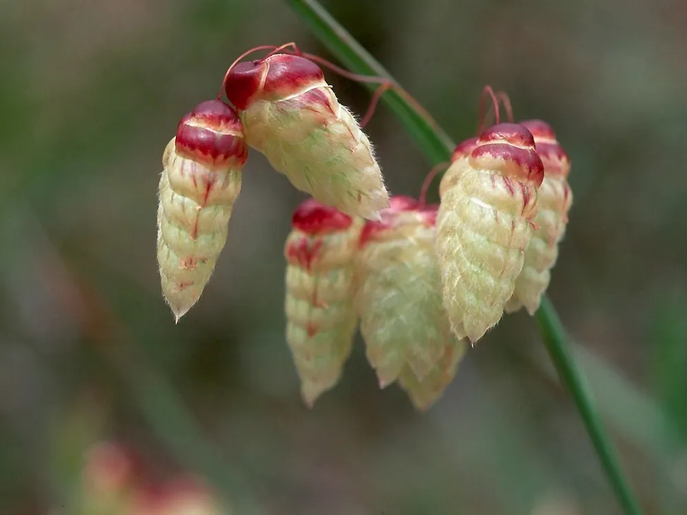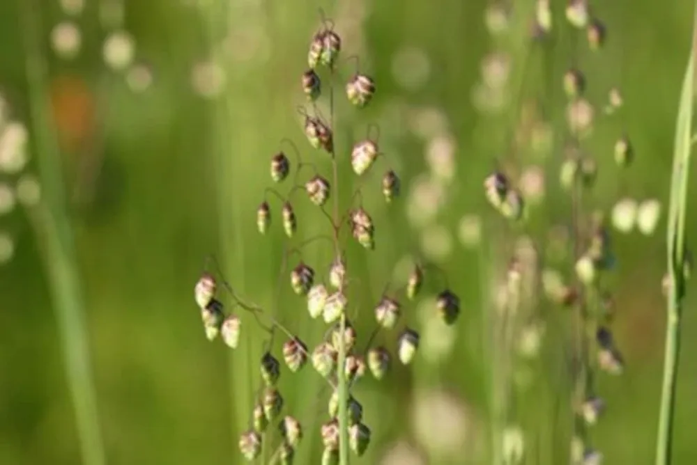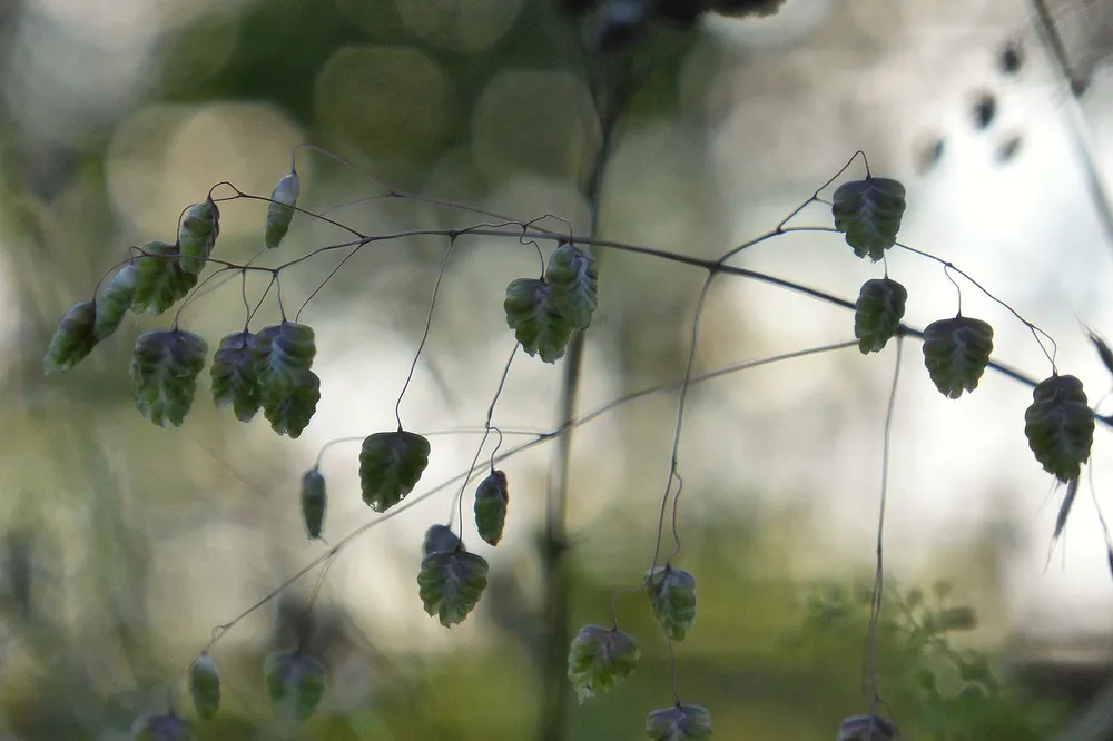 Бриза трясунка Амазонка выделяется среди других сортов своей необычной окраской листьев и яркими цветами.