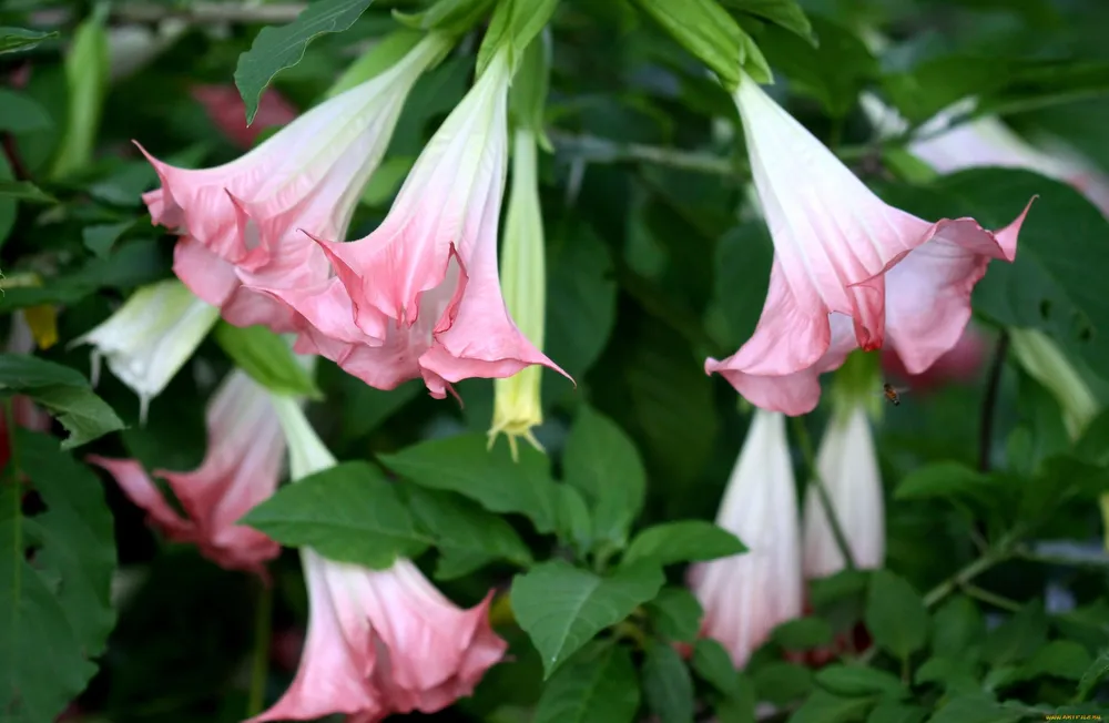 Бругмансию необходимо подкармливать каждые две недели в период активного роста (с марта по сентябрь) комплексными минеральными удобрениями для цветущих растений. В период цветения можно применять калийно-фосфорные удобрения, которые стимулируют закладку бутонов и увеличение количества цветов.