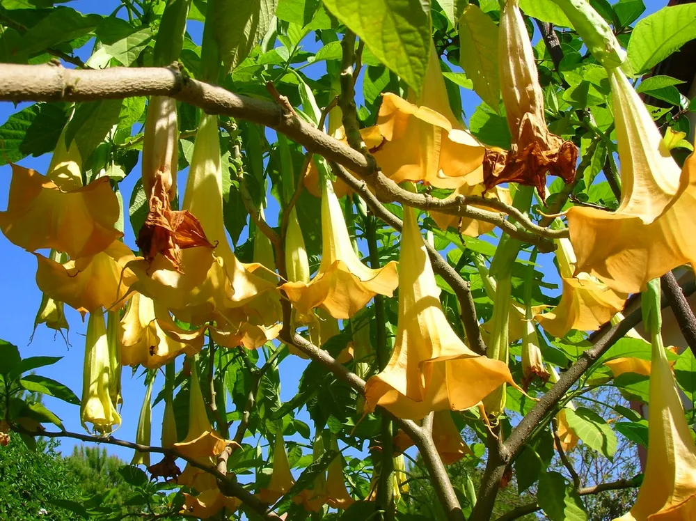 Аромагия желтая – это гибридный сорт, полученный путем скрещивания различных видов бругмансии. Это растение относится к семейству пасленовых и представляет собой лиану или кустарник до 2-3 метров в высоту. Цветение Аромагии желтой продолжается практически все лето, начиная примерно с середины весны и заканчивая осенью. Благодаря этому сорт является настоящим украшением сада.
