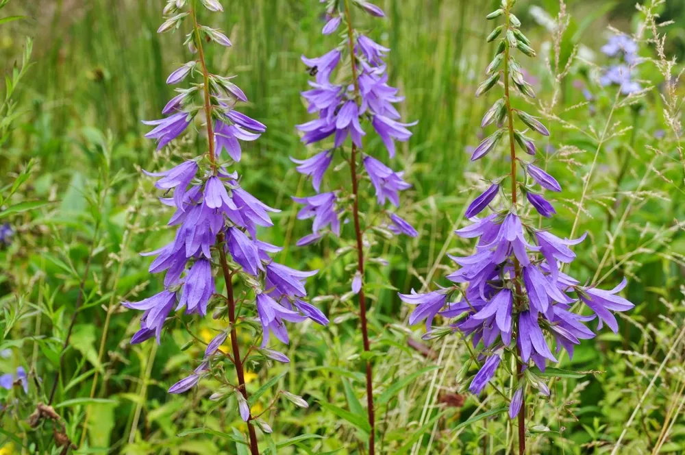 В природе бубенчик встречается в виде многолетних травянистых растений с прямостоячими стеблями и пышной листвой. Цветоносы, как правило, поднимаются над листвой и усеяны чашевидными цветками разнообразных оттенков – от нежно-розового до насыщенного синего. Некоторые сорта бубенчика могут достигать высоты 60 см, другие остаются компактными кустиками.