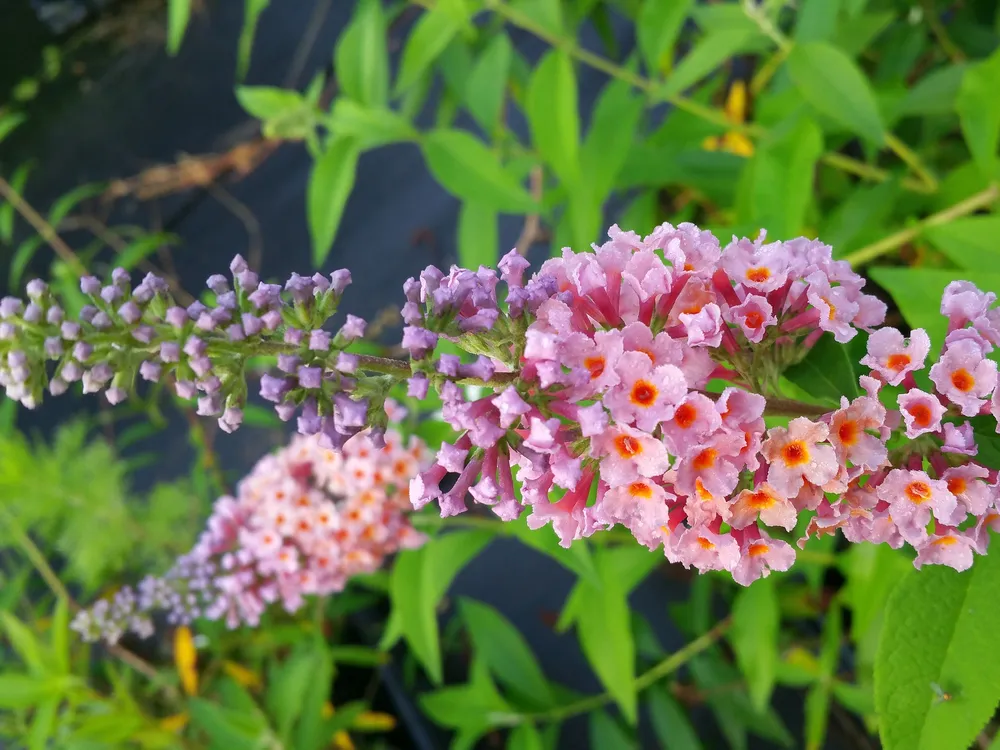 - Buddleja davidii ‘Pink Delight’ цветет розовыми цветами.