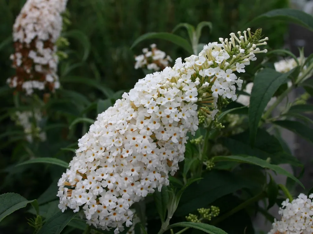 Сорт Буддлея Давида Фри Петит Сноу Уайт выделяется своей компактностью и белыми цветами среди других сортов Буддлеи.