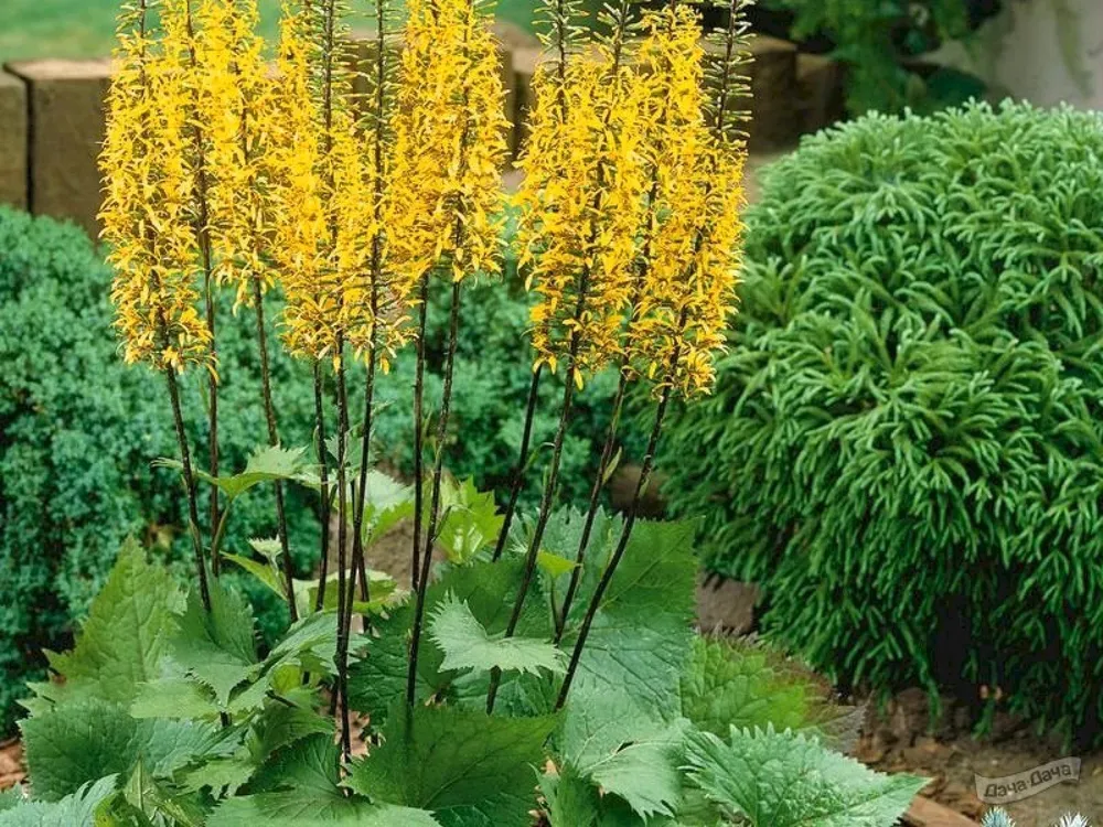 - Местоположение: Бузульник Литл Голден Рей предпочитает солнечные места, но может расти и в полутени.