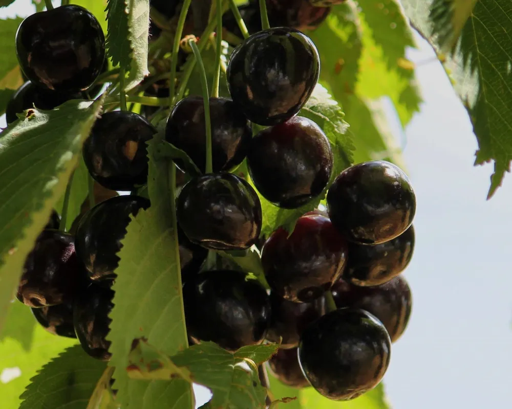 Черешня Бычий Глаз отличается от многих других сортов своей уникальной окраской плодов. В то время как большинство черешен имеет насыщенный красный цвет, Бычий Глаз обладает более глубоким темно-красным цветом с фиолетовым отливом, который придает ему особый шарм.