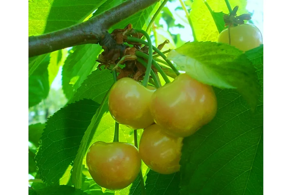 Черешня Приусадебная Желтая – это дерево средней высоты (до 4-5 метров), но для получения обильного урожая необходимо правильно формировать крону. В первый год после посадки проводят обрезку молодых побегов, оставляя 3-4 сильных прироста.
