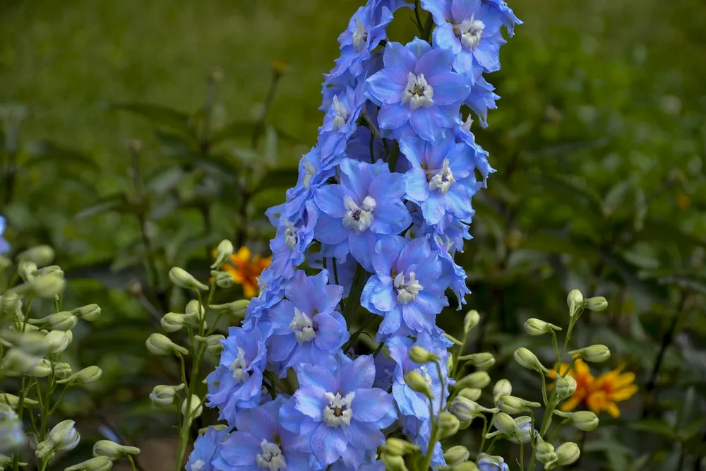 Дельфиниум Дарк Блю Дарк Бии выделяется среди других сортов своей необычайно насыщенной темно-синей окраской цветков, которая придает саду особую изысканность и глубину. В сравнении с другими сортами дельфиниума, у него более компактная форма роста, что делает его идеальным вариантом для небольших садов или контейнерного выращивания.