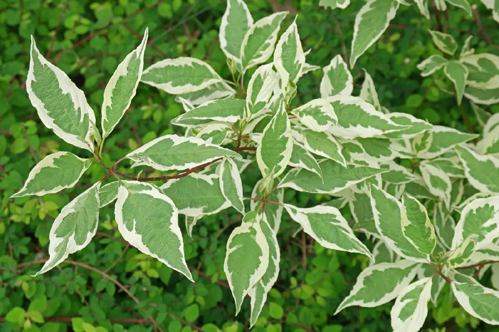 Дерен белый Сибирика Вариегата отличается от других сортов своей уникальной окраской листьев. Его лист более разнообразный по цвету, чем у обычного дерна белого, что делает его особенно привлекательным для садов.