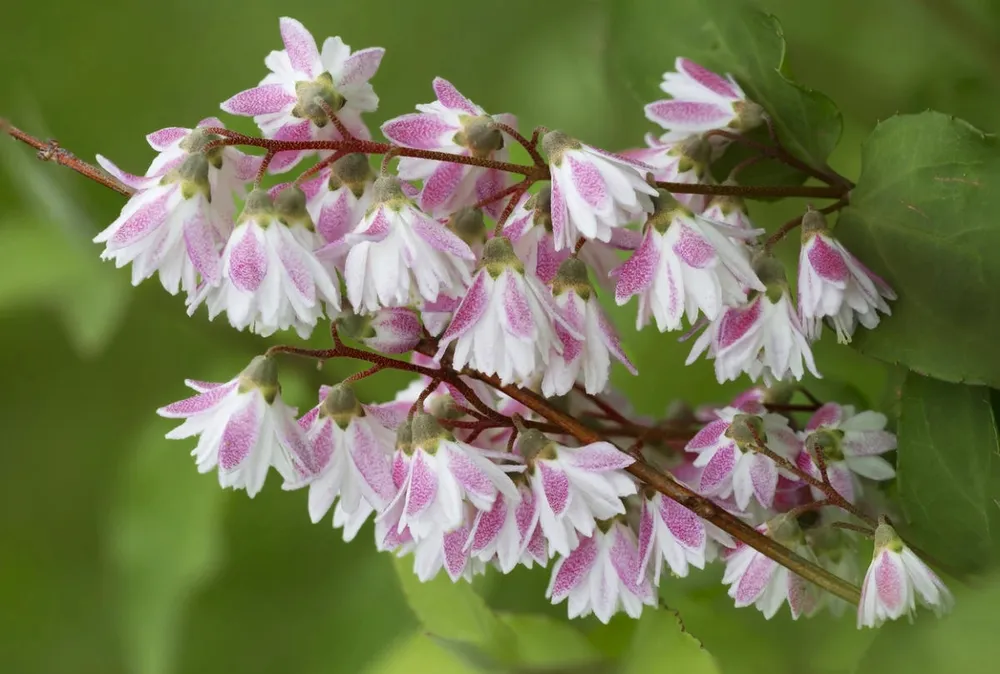 Ее яркие, крупные цветки, собранные в ажурные щитки, украшают кустарник с весны до поздней осени. Дейция изящная примечательна тем, что цветет очень продолжительное время – иногда около полугода. Цветы могут быть самых различных оттенков: от белой и розовой до красной и фиолетовой гаммы.