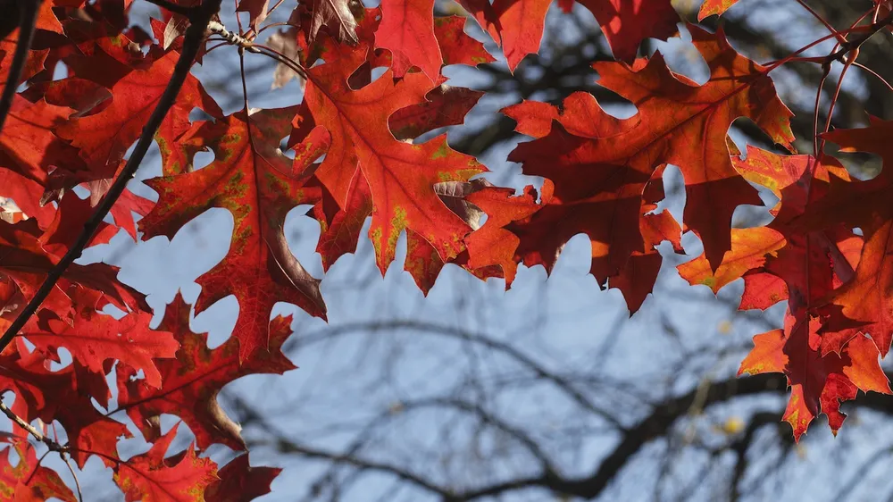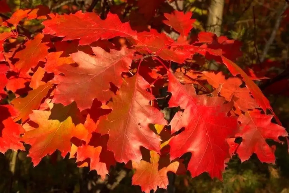 Дуб красный отличается от других видов дубов своей яркой осенней окраской листьев. В отличие от дуба английского, у которого листья имеют более эллиптическую форму и не настолько выраженную зубчатость по краю, дуб красный обладает крупными, округлыми листами с хорошо заметными зазубринами.