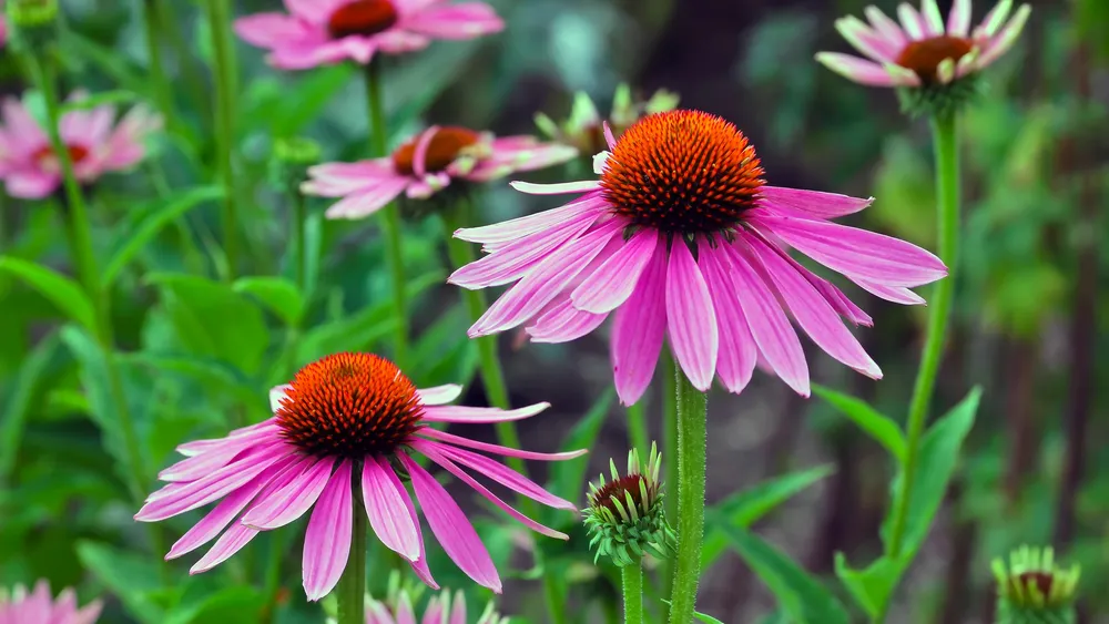 Эхинацея (Echinacea), известная также как «солнечный цветок» или «ежеголовник», представляет собой род многолетних травянистых растений семейства астровых. Родина эхинацеи – Северная Америка, где ее использовали индейцы для лечения различных заболеваний еще задолго до появления современной медицины. В настоящее время эхинацея широко распространена как в садах любителей, так и в профессиональном цветоводстве. Благодаря своей неприхотливости в уходе, красочным соцветиям и лечебным свойствам, эхинацея завоевала популярность по всему миру. Цветоводы ценят ее за способность украшать сад долгое время, а традиционная медицина – за иммуномодулирующие и противовирусные свойства.
