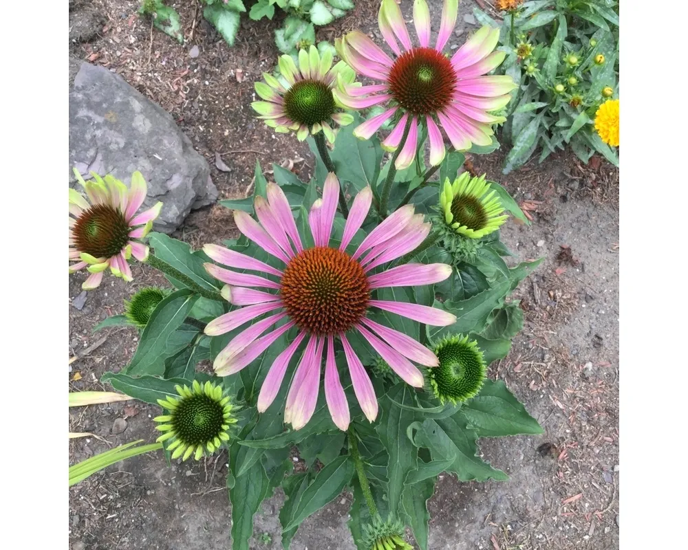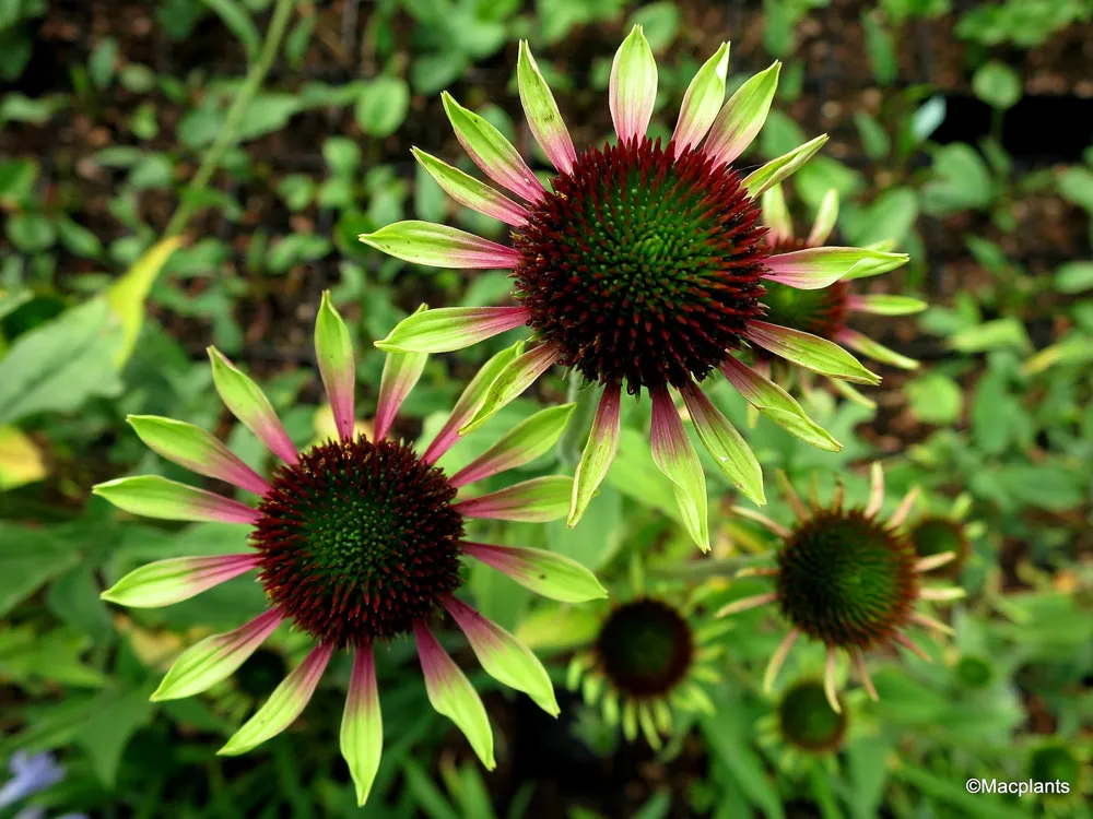 Эхинацея пурпурная ‘Грин Твистер’ — это замечательный сорт, который покоряет своей экзотичностью и ярким внешним видом. Как и его предки – дикие виды эхинацеи из семейства сложноцветных, этот гибрид ценится за свои декоративные качества и лечебные свойства. Его отличительной особенностью является необычно окрашенная центральная часть цветка: она нежно-зеленая с фиолетово-пурпурными кончиками лепестков, создавая поистине уникальный визуальный эффект. ‘Грин Твистер’ – это относительно новый сорт эхинацеи, выведенный селекционерами в конце 20 века. Он быстро завоевал популярность благодаря своей неприхотливости и долгому периоду цветения.