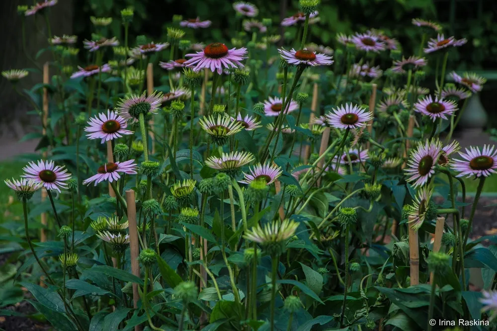 — Чтобы избежать пересыхания почвы, можно мульчировать поверхность вокруг куста слоем торфа или опилок толщиной 5-7 см. — Эхинацея ‘Грин Твистер’ хорошо переносит зиму в условиях средней полосы России, но молодые растения могут нуждаться в дополнительном укрытии на первый год после посадки.